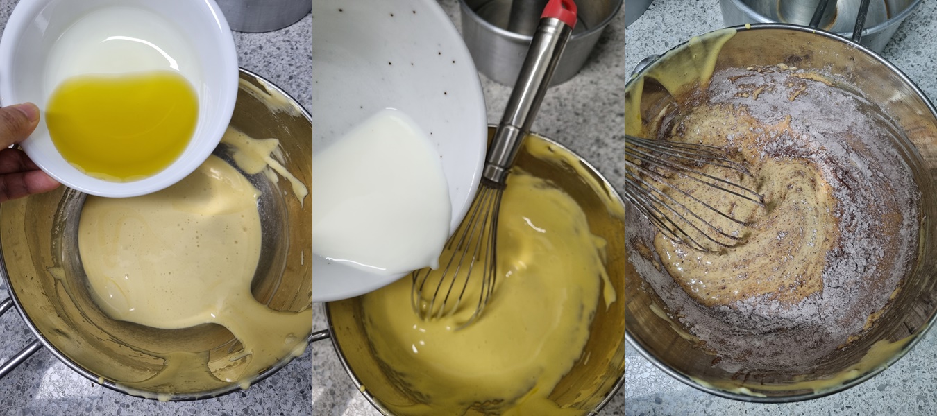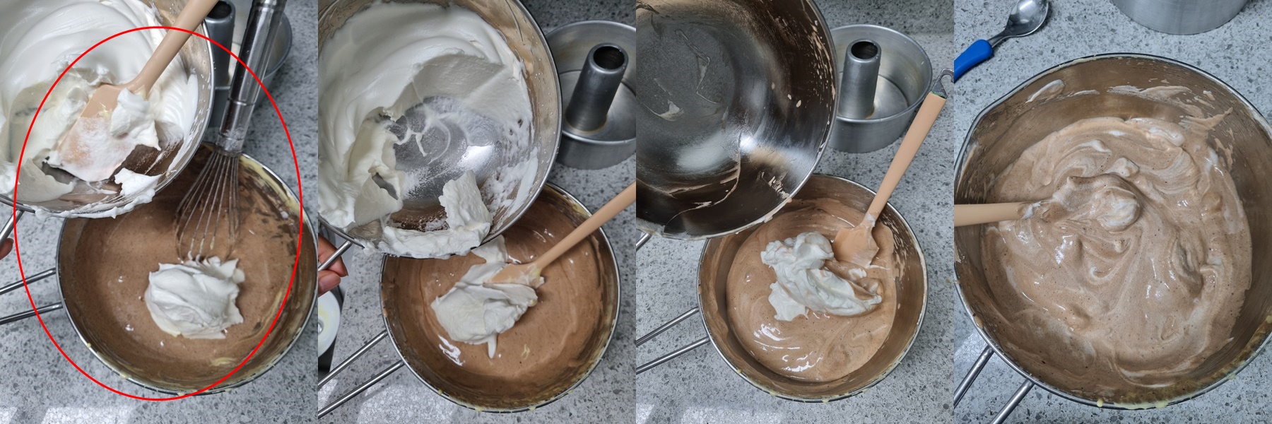 9. Add 1/3 of the meringue into the dough and mix with a whisk.